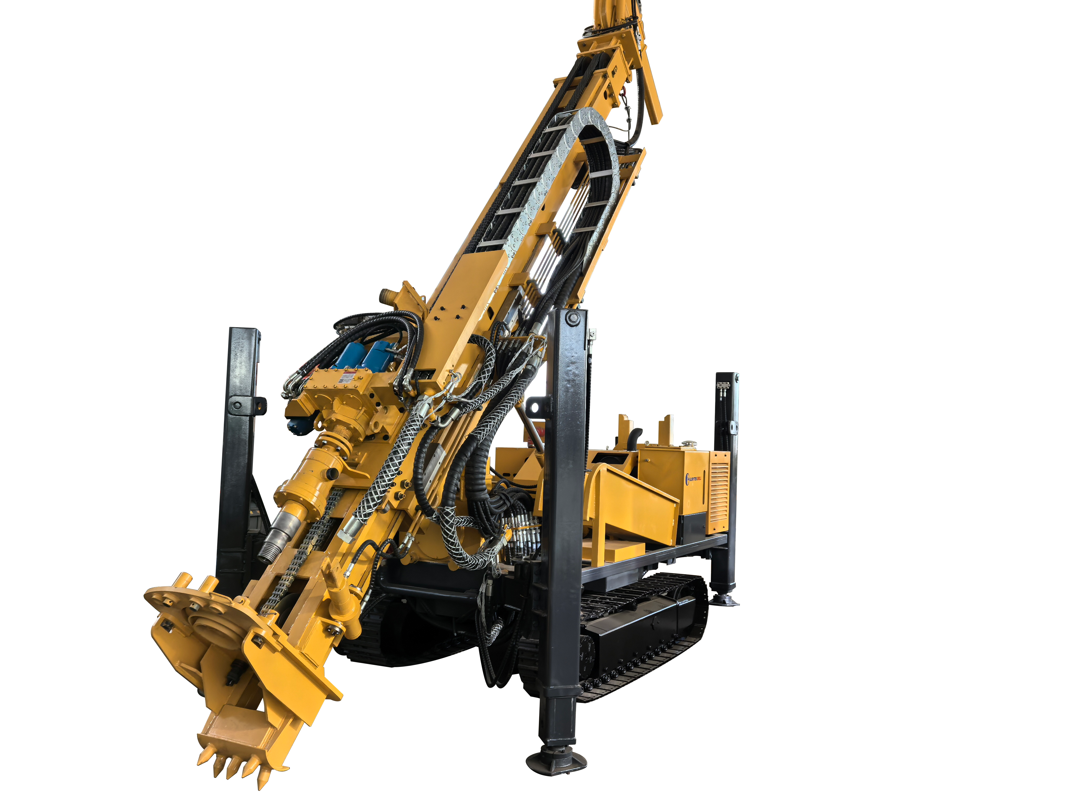 Máy khoan thăm dò tuần hoàn ngược GLF400 là một giàn khoan nhẹ, hiệu quả cao, thân thiện với môi trường, đa chức năng, hoàn toàn thủy lực.Nó kết hợp công nghệ khoan RC mới nhất, với bụi đá được thu thập hiệu quả thông qua máy thu bụi để ngăn ngừa ô nhiễm môi trường.Các vỏ cũng có thể được thu thập thông qua một máy tách bão để sử dụng trong lấy mẫu và phân tích bởi các bộ phận thăm dò địa chấtVới cấu trúc tiên tiến, hoạt động thân thiện với người dùng và thời gian phụ trợ tối thiểu, nó được áp dụng rộng rãi cho khoan giếng nước, khoan giám sát và các lỗ khoan thăm dò khác,cũng như để khoan các lỗ máy bơm nhiệt địa nhiệt trong xây dựng đô thị. Cỗ máy này sử dụng khí nén khoan dưới lỗ, đạt được tỷ lệ thâm nhập cao trong đá với độ cứng Mohs f = 6-20.